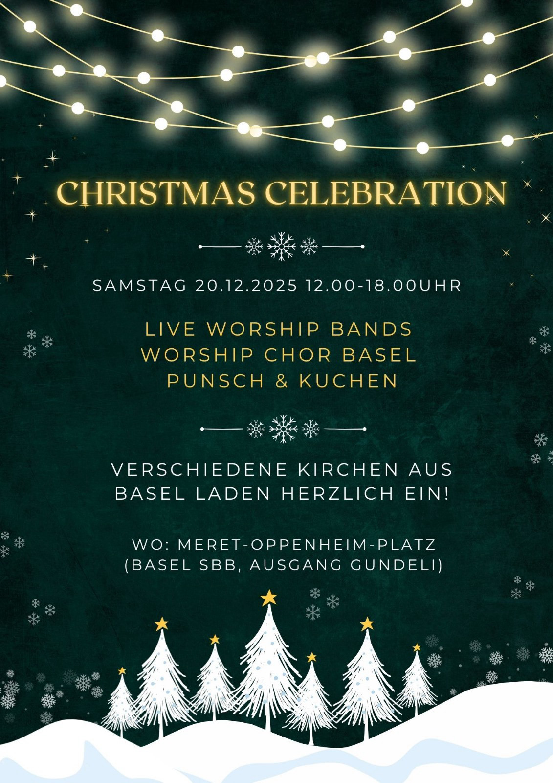 Auch dieses Jahr findet wieder eine CHRISTMAS CELEBRATION statt! Dieser besondere Event wird von verschiedenen Basler Kirchen getragen und vom Netzwerk Basel organisiert.